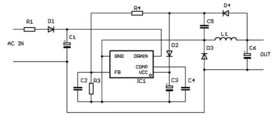 韜放電子的超高壓技術(shù),NCP1067x具有集成的700V功率MOSFET,其R DSon)低至12Ω。在連接到230V AC的開放式配置中,開發(fā)人員可以實現(xiàn)能夠提供15.5W功率的電源。為了改善EMI,NCP1067x通過在標(biāo)稱開關(guān)頻率上引入±6%的變化來利用頻率抖動。設(shè)備內(nèi)部產(chǎn)生用于施加抖動的掃描鋸齒波形。在非隔離式設(shè)計中,使用了一個反饋引腳,該引腳將一小部分輸出電壓施加到集成的跨導(dǎo)放大器。