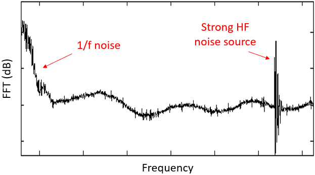 您可能希望從時(shí)域PDN紋波測(cè)量中看到FFT結(jié)果。強(qiáng)大的高頻噪聲源對(duì)背景噪聲非常明顯