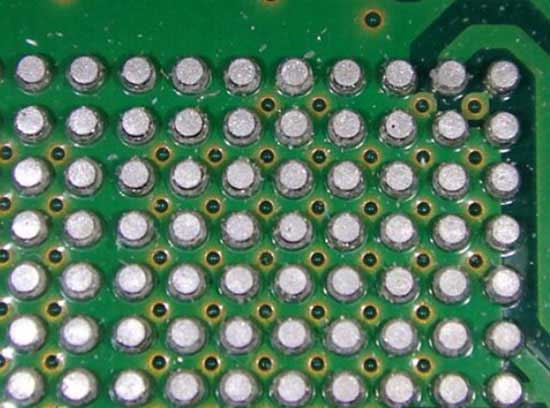 (圖3. BGA使用焊球網(wǎng)格將電信號傳導(dǎo)至PCB或從PCB傳導(dǎo)電信號)