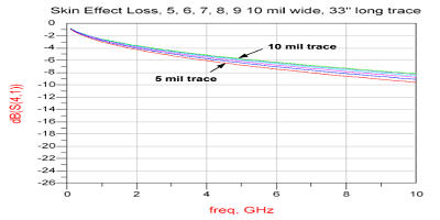 如上所述,使用更寬的走線的動(dòng)機(jī)是通過增加走線的表面積來減少由集膚效應(yīng)現(xiàn)象引起的信號(hào)損失。