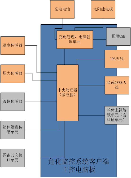4.客戶端系統(tǒng)包括:主控制器,溫度傳感器,壓力傳感器,GPS/北斗定位系統(tǒng),數(shù)據(jù)發(fā)送系統(tǒng)(4G或GPRS等)